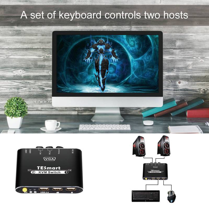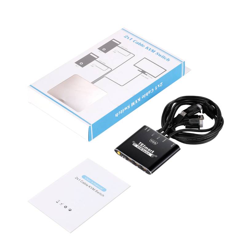 This 2x1 VGA Cable KVM Switch provides you with great flexibility in integrating cross-platform computer equipment easily. It makes you available to switch easily and reliably between two computers using one compliant display.