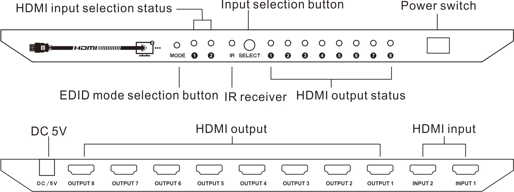 HSP0208A11 | 2x8 HDMI Switch /Splitter | |