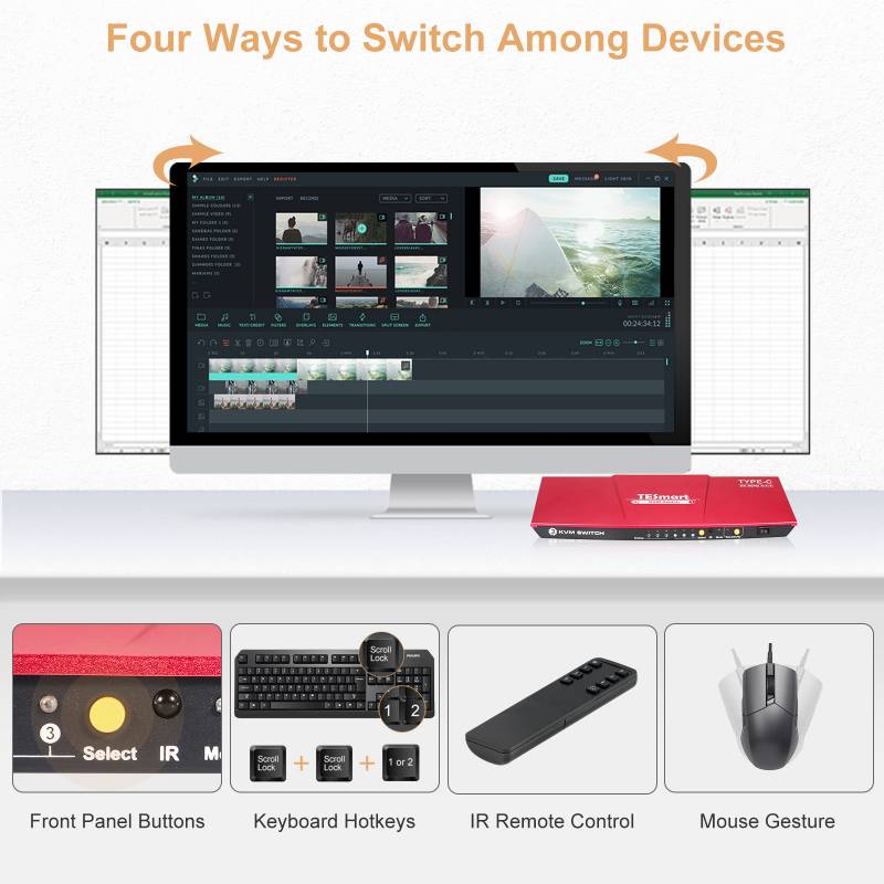 This 3x1 USB Type-C KVM Switch provides you with great flexibility in integrating cross-platform computer equipment easily. It makes you available to switch easily and reliably between any USB Type-C computers using one HDMI compliant display.