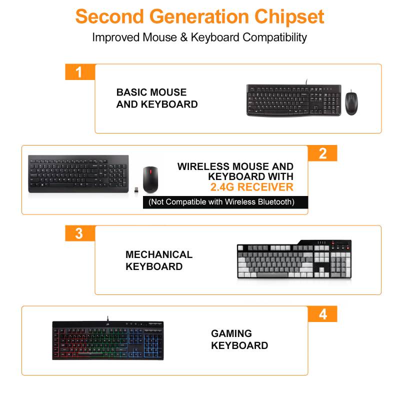 11 | Keyboard and mouse input | For USB keyboard and mouse input, including wireless keyboard and mouse |