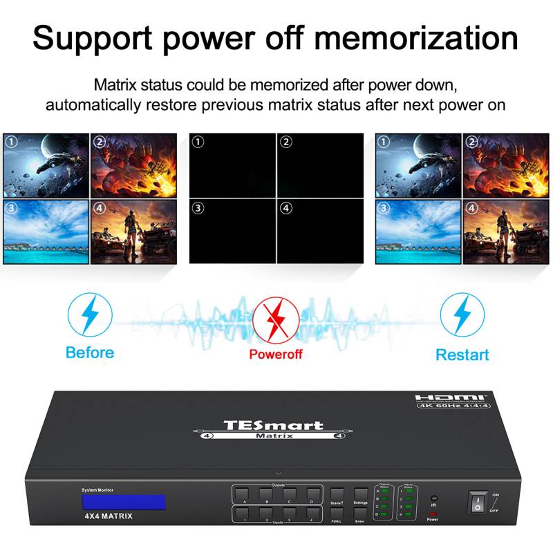 l Matrix status could be memorized after power down, automatically restoreprevious matrix status after next power on