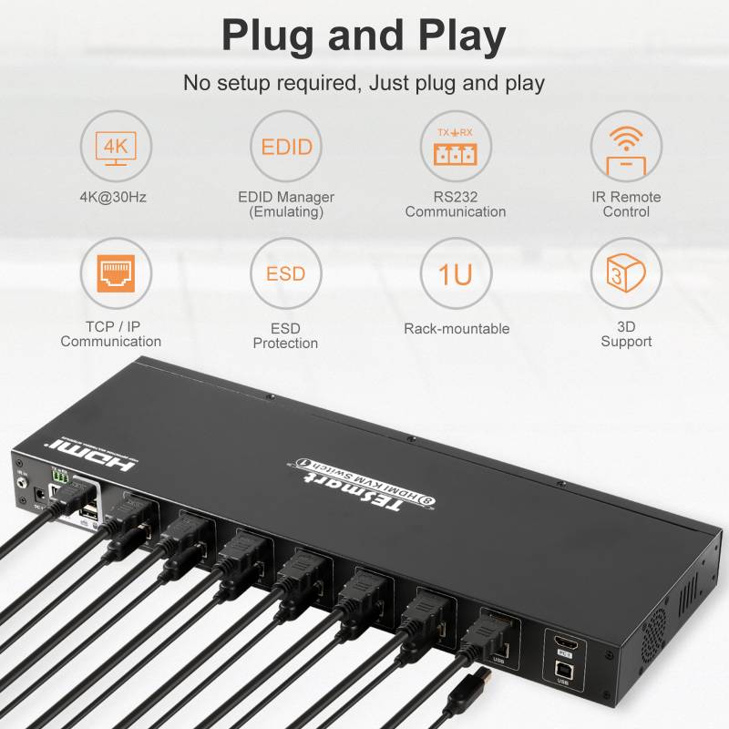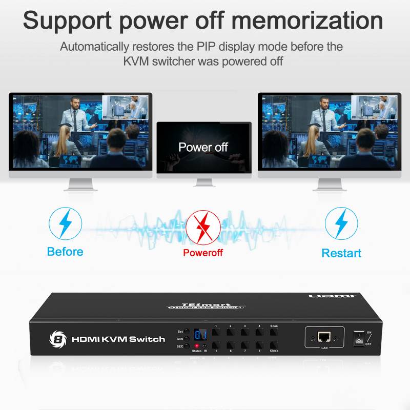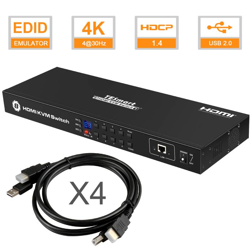 This 8x1 HDMI KVM switch provides you with great flexibility in integrating cross-platform computer equipment easily. It makes you available to switch easily and reliably between any HDMI computers using one HDMI compliant display.